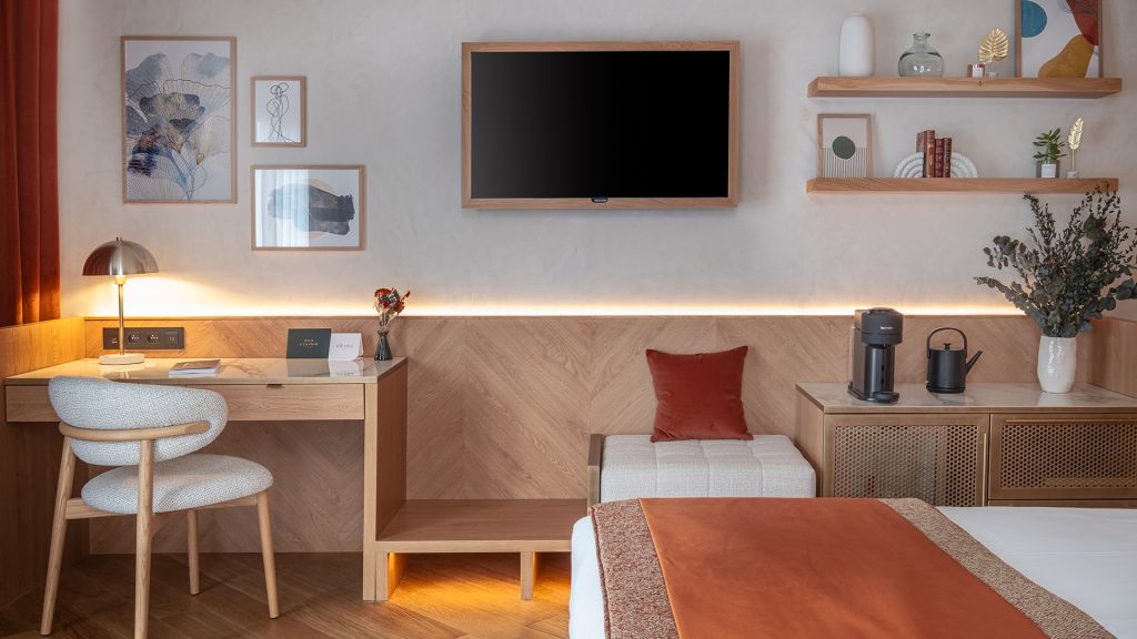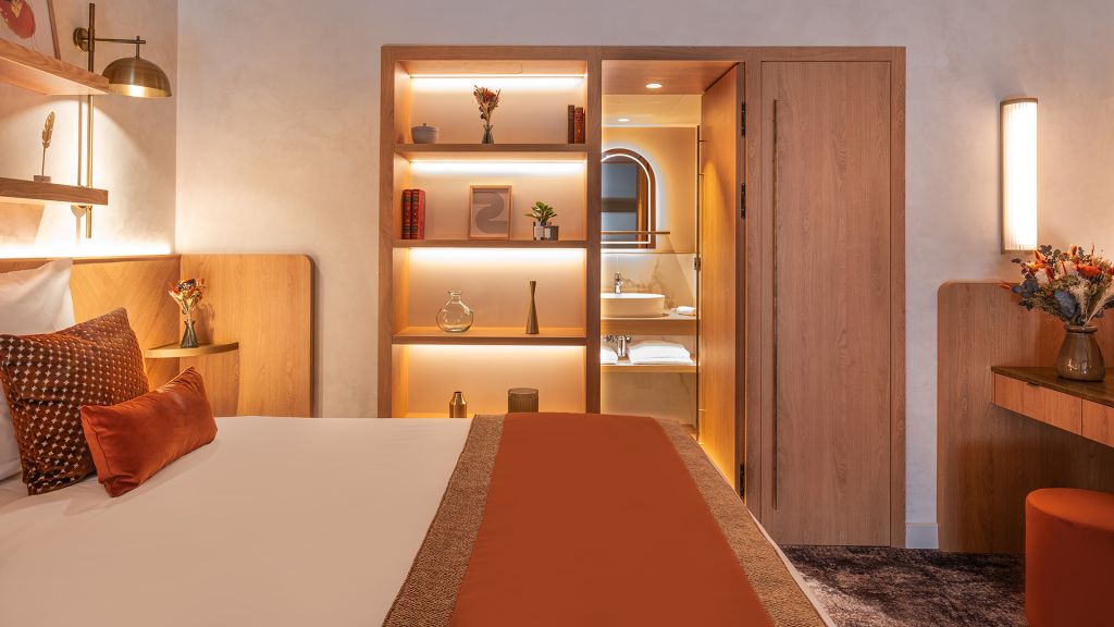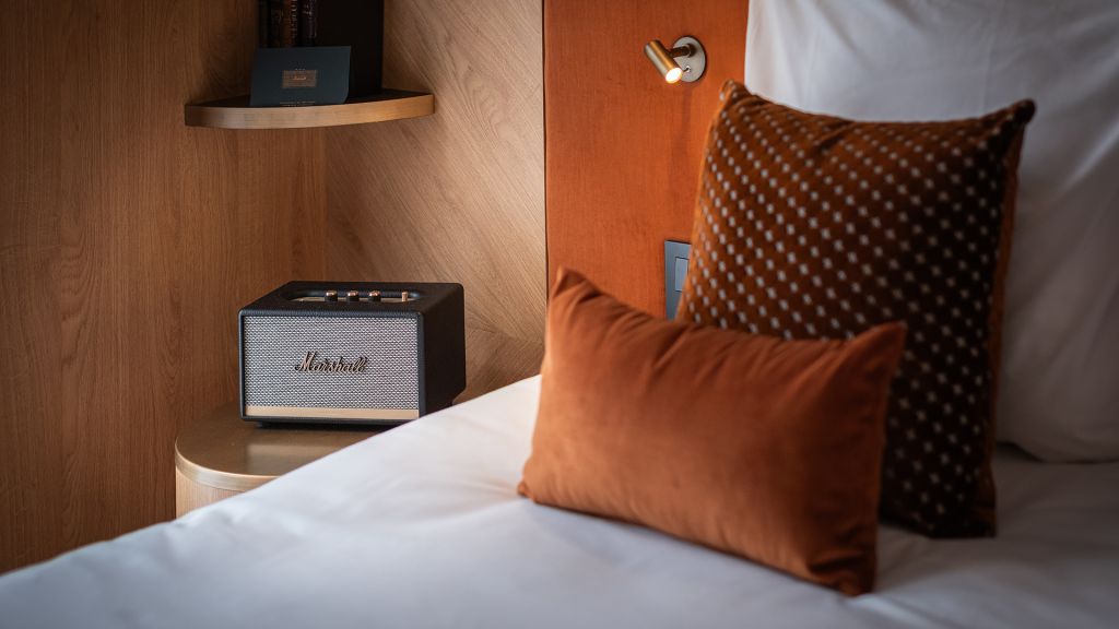 The hotel features 83 guest accommodations, each a modern retreat blending style, comfort, and technology. Designed to feel intimate yet spacious, rooms include Terre de Mars toiletries, Netflix access, and Marshall speaker systems for a luxurious and connected stay.