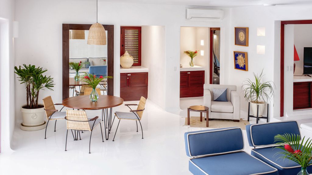 With 47 suites and four villas sited with breezes and shade in mind, each is a study in proportion and comfort. All have generous terraces that look out onto either leafy gardens or the sea, and many offer private plunge pools or rooftop spaces for morning coffee or late‑night stargazing. Thoughtful details like ample natural light, seamless indoor‑outdoor transitions, and locally inspired materials give each space a personality of its own.