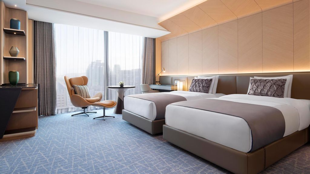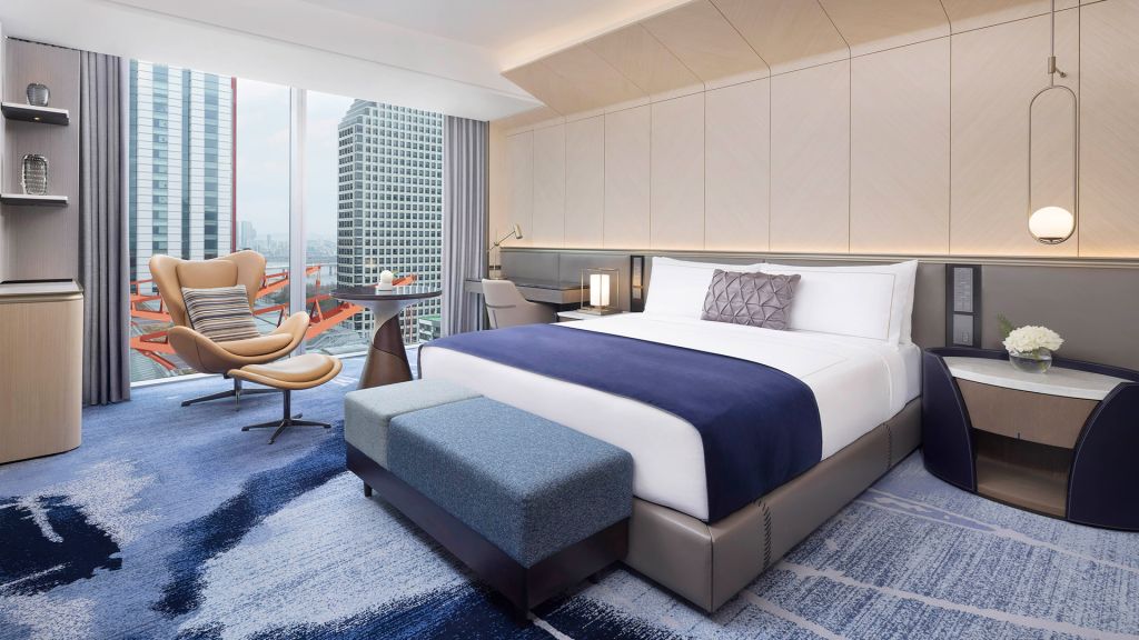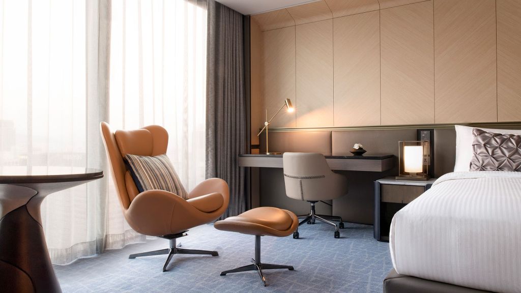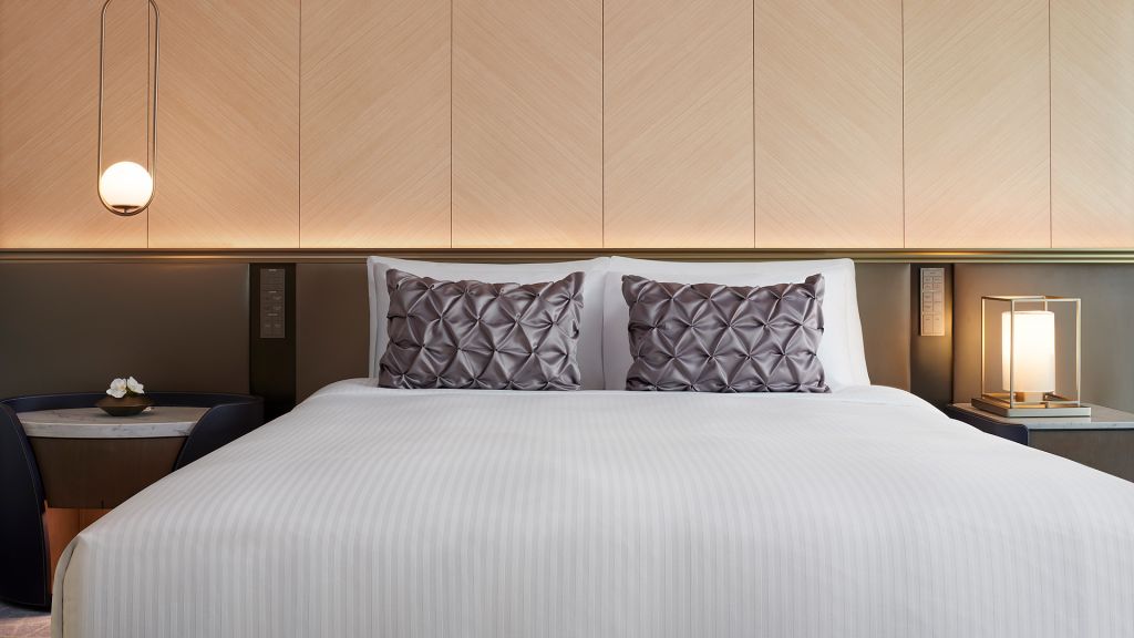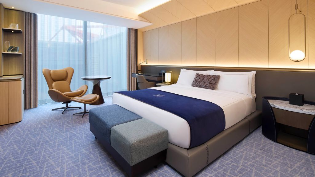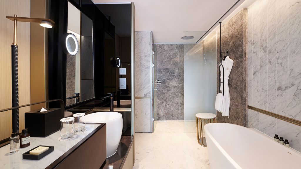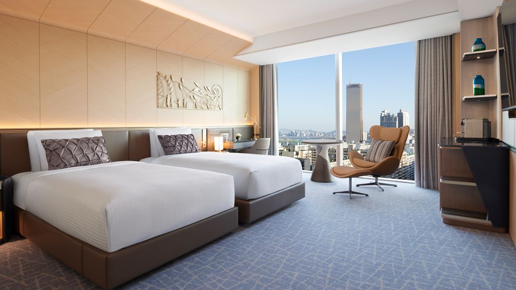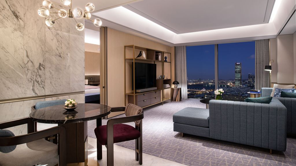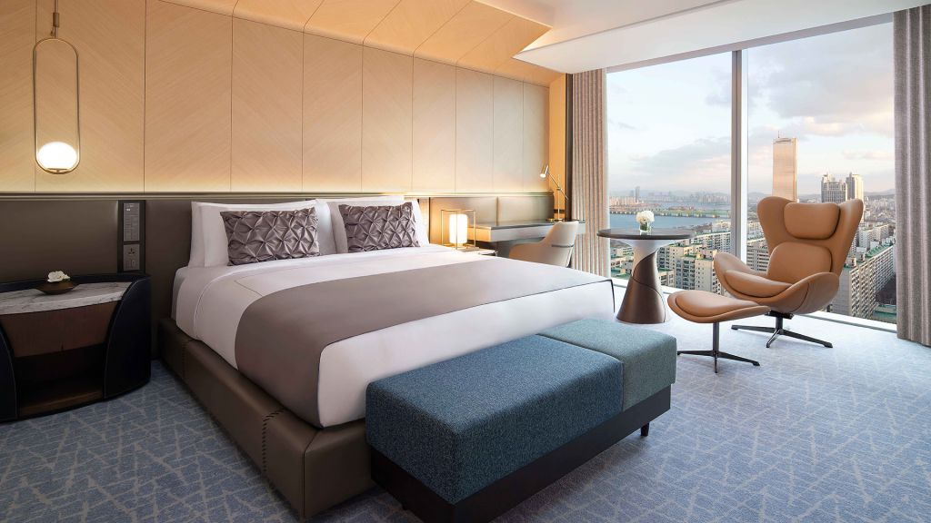 Guest rooms and suites balance contemporary comfort with a refined sense of place. Each space feels calm and thoughtfully composed with marble bathrooms, soft lighting, and generous windows framing views of the Han River or Seoul’s skyline. Higher floors offer an even greater sense of openness, while select accommodations include access to an exclusive lounge for added privacy and personalized service.