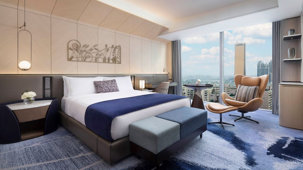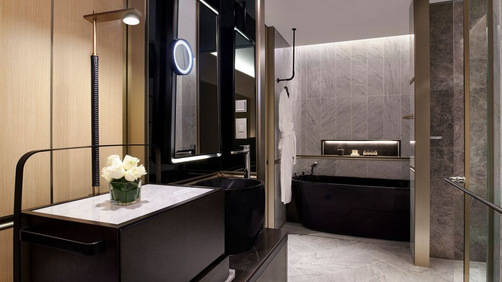Relax and unwind in an elegant blend of sophisticated interior design and modern furniture, complemented by an exquisite marble bathroom. The room images may differ from the actual assigned view.