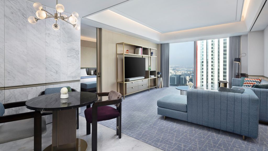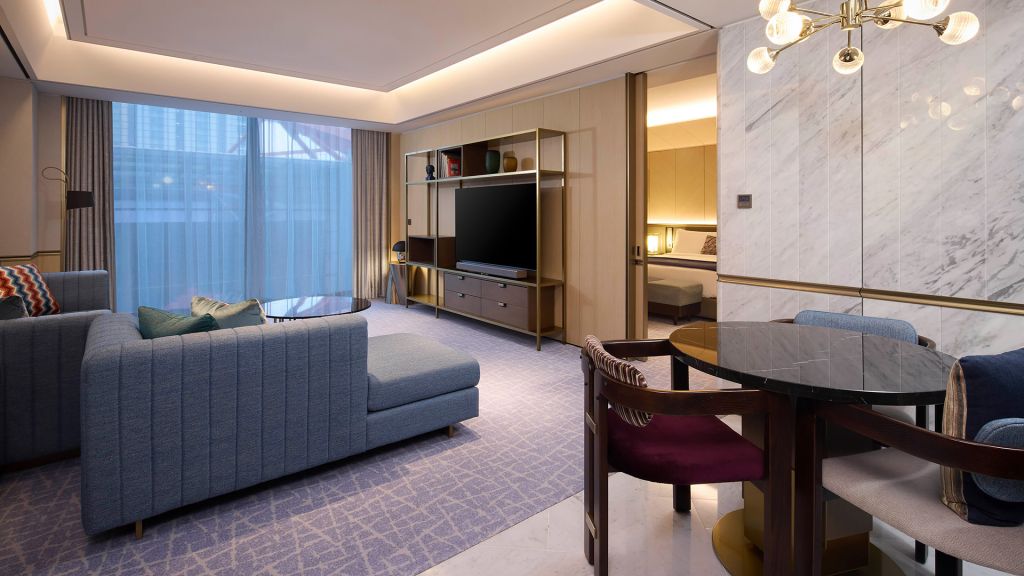 Premier suite comprising two bedrooms, two bathrooms, and a living room with a sofa and three-seat dining table. Access to Gold Lounge, serving daily breakfast, afternoon tea. *The room images may differ from the actual assigned view.