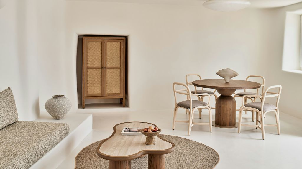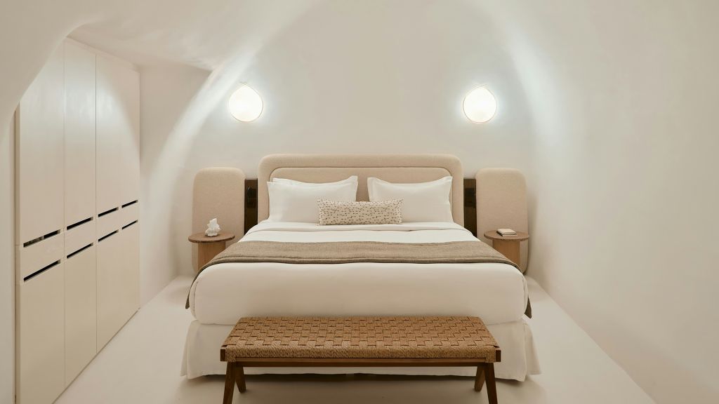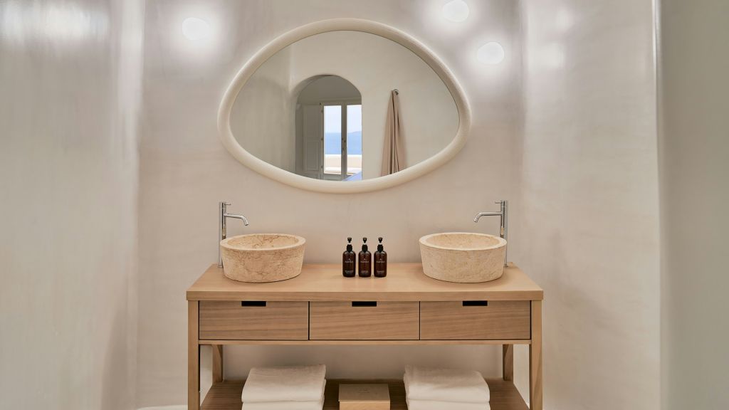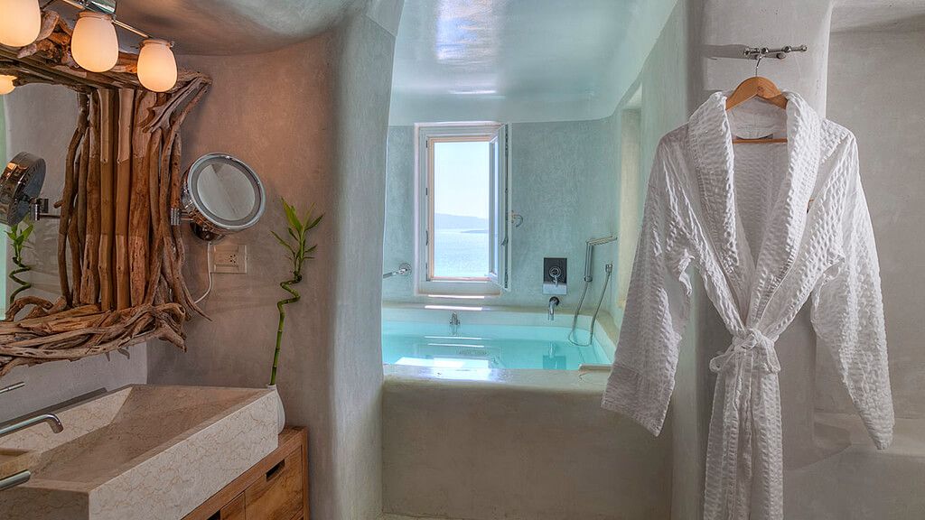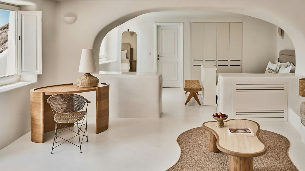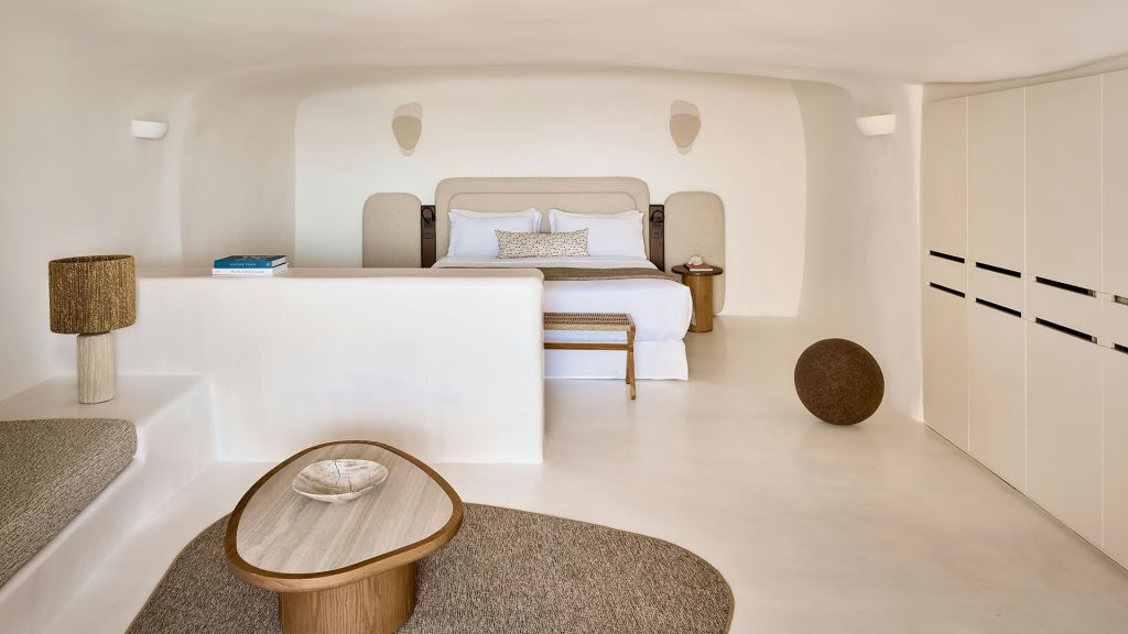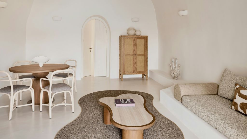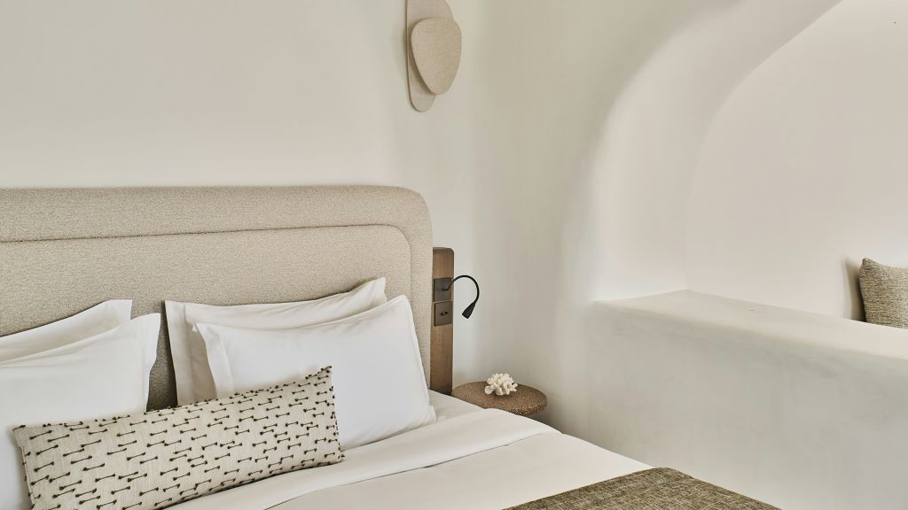 Mystique’s design follows the emblematic cycladic architecture, where gentle curves and sculpted arches blend with a muted color palette and light enhancing spaces. With an abundance of light and an airy feel, the interiors are a combination of traditional regional charm and natural untamed materials.