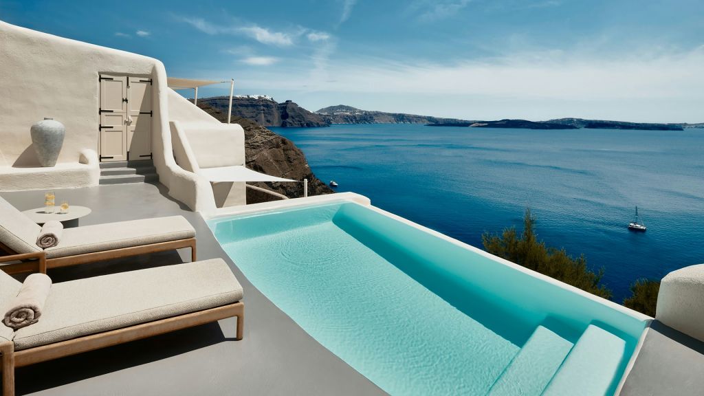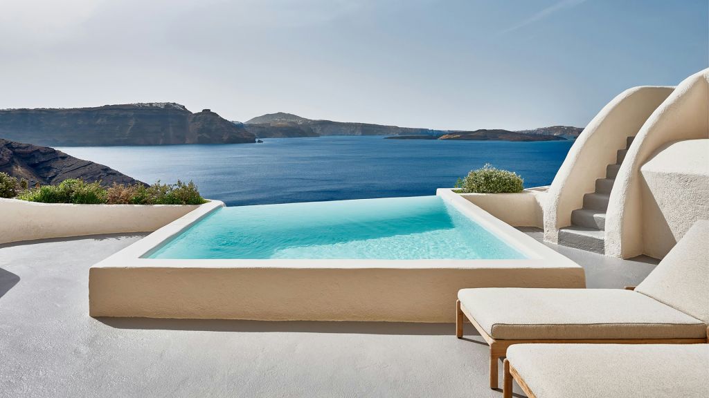 On the northern tip of Santorini, Greece, Mystique, a Luxury Collection Hotel's cliffside eyrie offers exclusive tranquility and some of the most striking cliff and coastal views in the Aegean.