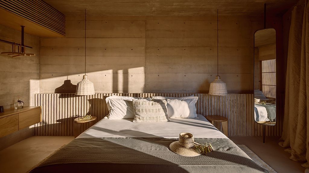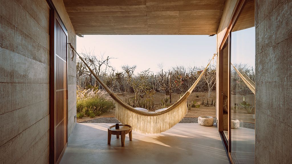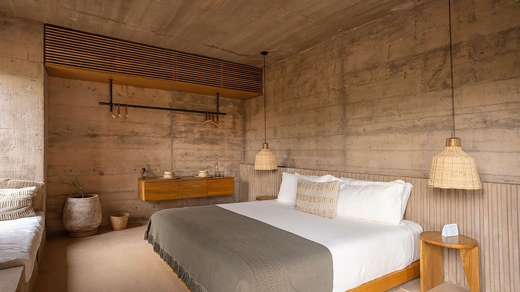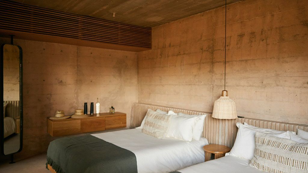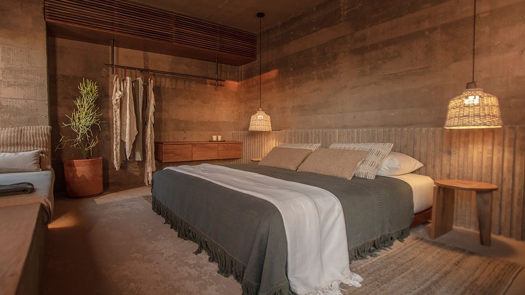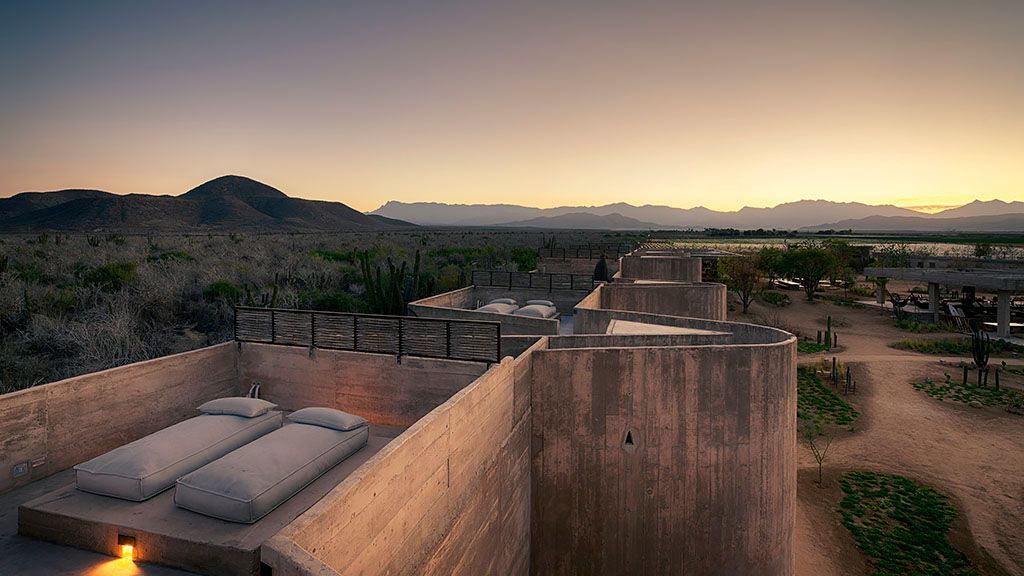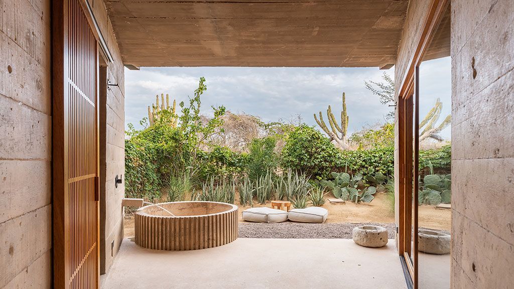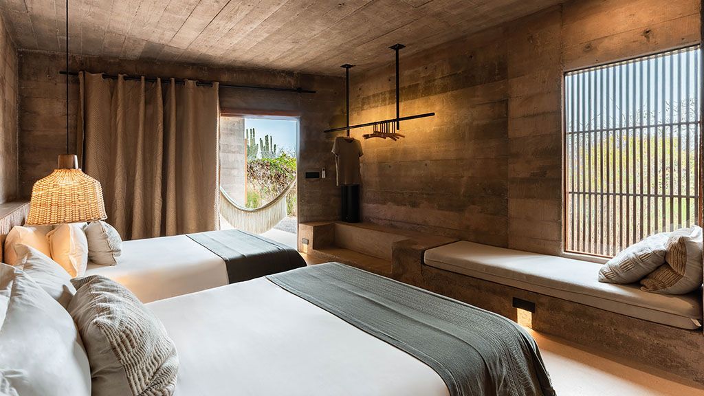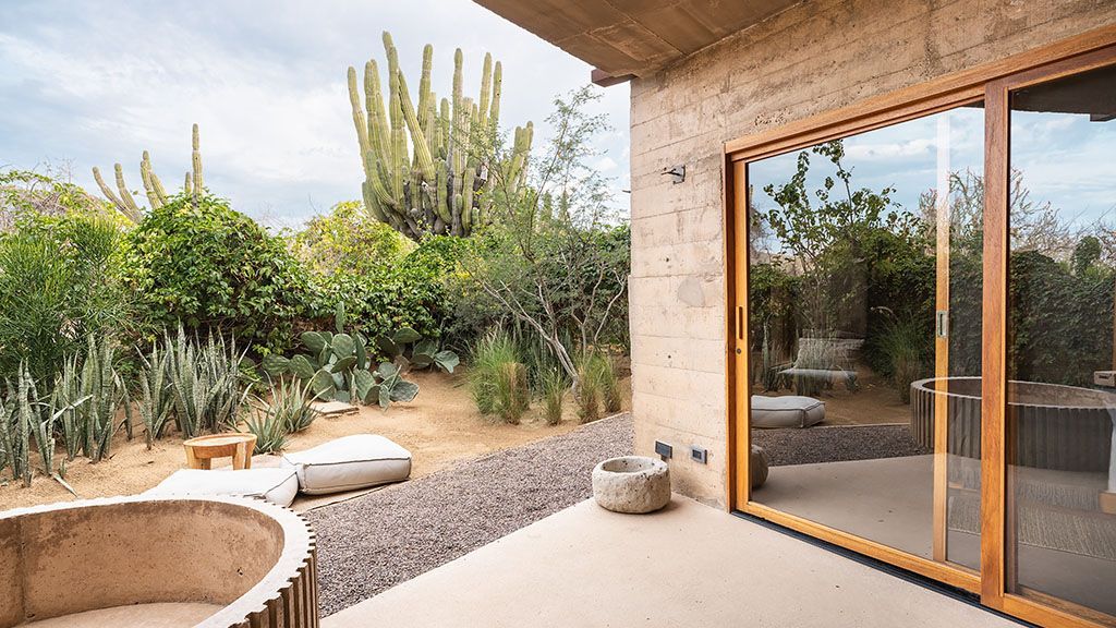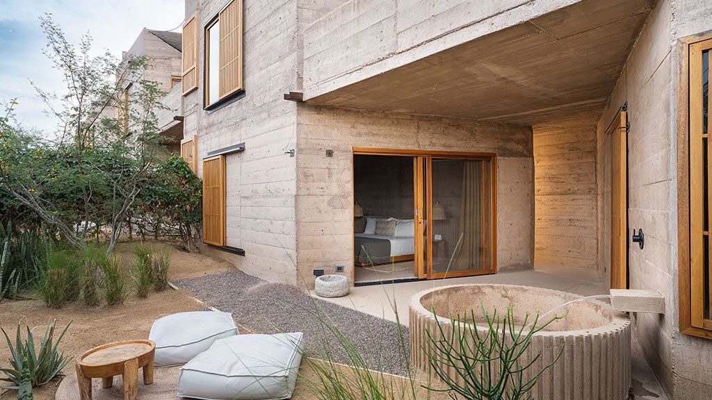 Set on a previously empty 5.5-acre desert plot, this visually striking property consists of a series of brutalist-inspired concrete structures that blend seamlessly into their sandy natural surroundings. Upon arrival, the hotel feels like an oasis amid the sleepy farming community of Todos Santos thanks to a 100,000-square-foot botanical garden.