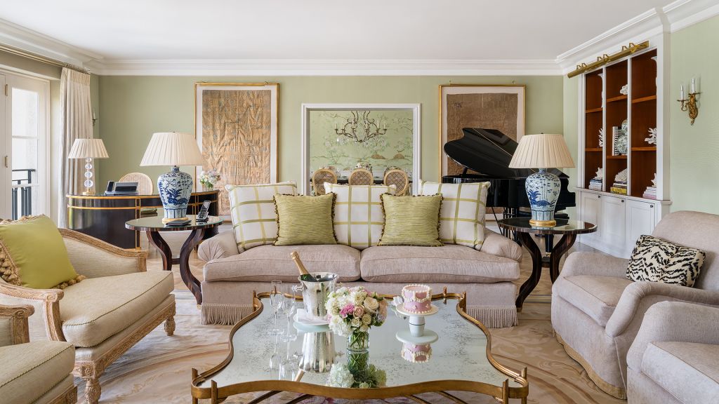 The peninsula suite is located in the main building with views overlooking the city and mountains. The suite is elegantly decorated in green and gold with a large living room that features a baby grand piano and a sofa bed. Ideal for entertaining - the suite offers a dining table for 10 persons - a fully-equipped kitchen - a wet bar and fireplaces in the living room and bedroom. The bedroom features a sitting area along with a sumptuous king size bed with pillow top mattress - luxury bed linens and duvet. Added appointments include a vanity area and walk-in closets. Additional features include an executive desk with speakerphone and voice mail. The well-appointed marble bathroom features a deep soaking tub and separate shower cabin plus luxurious designer bath amenities and double vanities. Suite amenities include complimentary wireless internet access - a hair dryer - mini-bar - personal safe - a widescreen hdtv. Added amenities include climate control - bottled water - a fruit basket plus several other luxurious appointments. Included with published room rates is the use of a luxury vehicle during the duration of the guests stay subject to proof of insurance and a valid u. S.-issued drivers license. Other conditions apply to vehicle use. Contact the hotel to reserve vehicle prior to guest arrival. This suite can connect to a deluxe double room.