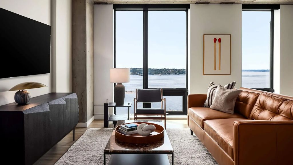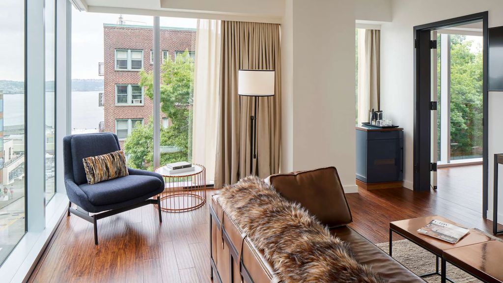 Overlooking the vast harbor of Puget Sound and Olympic Mountain, custom floor-to-ceiling windows are designed to dissolve barriers inside and out. Sink into your deluxe king bed or sip a chilled aromatic cocktail in your hotel suite. Luxe fittings like warm hardwood floors and mid-century boutique furniture compliment the sleek surroundings.